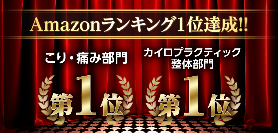 - ネット通販最大手のAmazonの「カイロプラクティック・整体」部門と「コリ・痛み」部門の2部門にてベストセラー2冠という快挙を達成