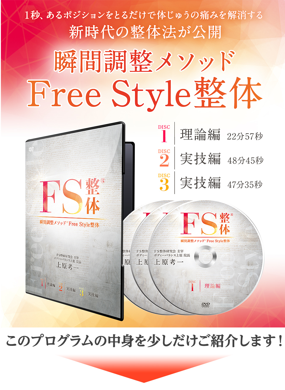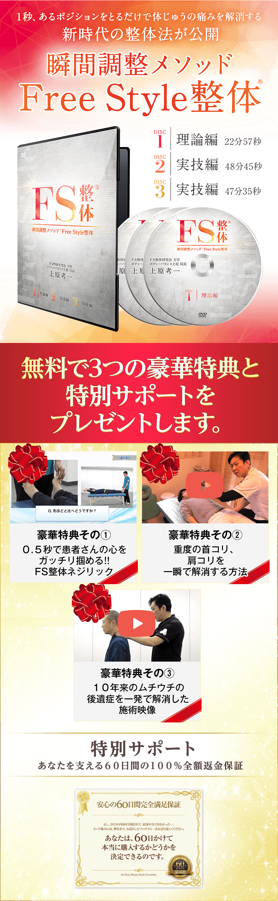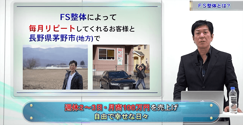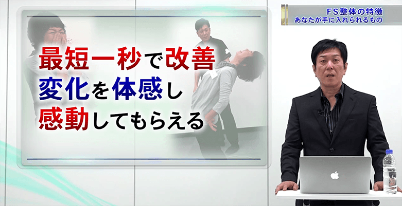 そうなると、FS整体の全身アプローチが収められたプログラムを手に入れることが、どれほどの投資になるかをお考えいただけると思います。
