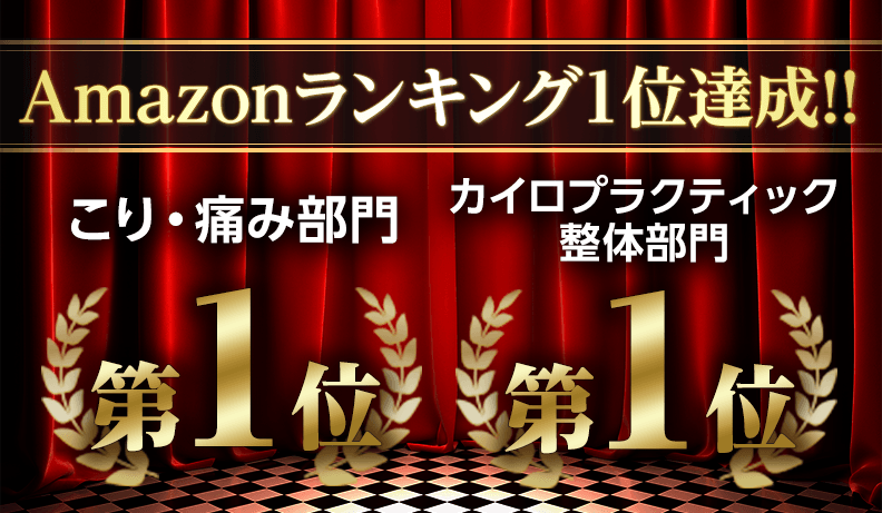 - ネット通販最大手のAmazonの「カイロプラクティック・整体」部門と「コリ・痛み」部門の2部門にてベストセラー2冠という快挙を達成