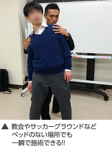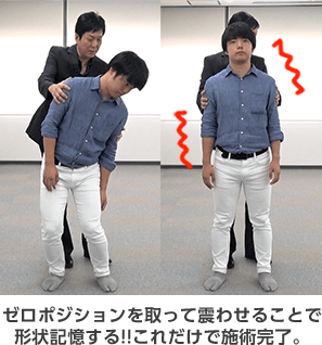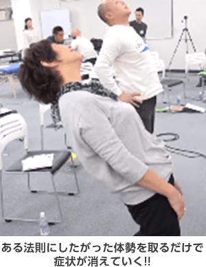 既存の手技のように、決められた箇所を押したり、揉んだり、矯正したりする必要はなく、ただ患者さんがラクな「ある姿勢」にするだけで一瞬で全身が緩み、痛みが消えていってしまうのです…(このヒミツは、”人体のカラクリ”と”脳のクセ”をうまく突いていることにあります)