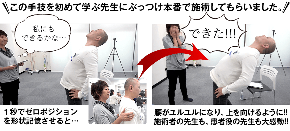 と施術の度に驚かれ、来院したすべての患者さんが感動し、あなたの施術の腕に全幅の信頼を置いてくれるようになります。さらに、この感動体験を誰かに伝えたくなるので、あなたはこの手技をただ黙々としているだけでもいつの間にかクチコミ患者さんが院に殺到してくることでしょう。