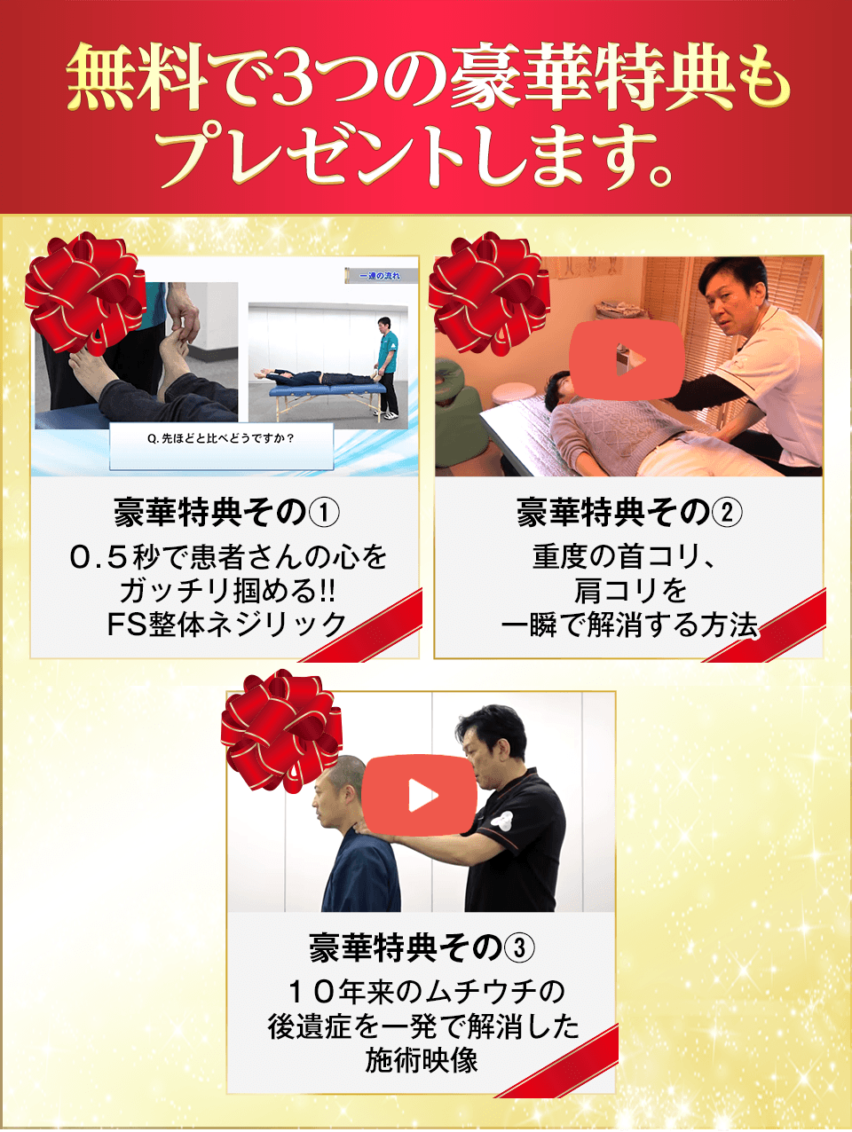 | 【特典3】 10年来のムチウチの後遺症を一発で解消した施術映像 (オンライン映像) |