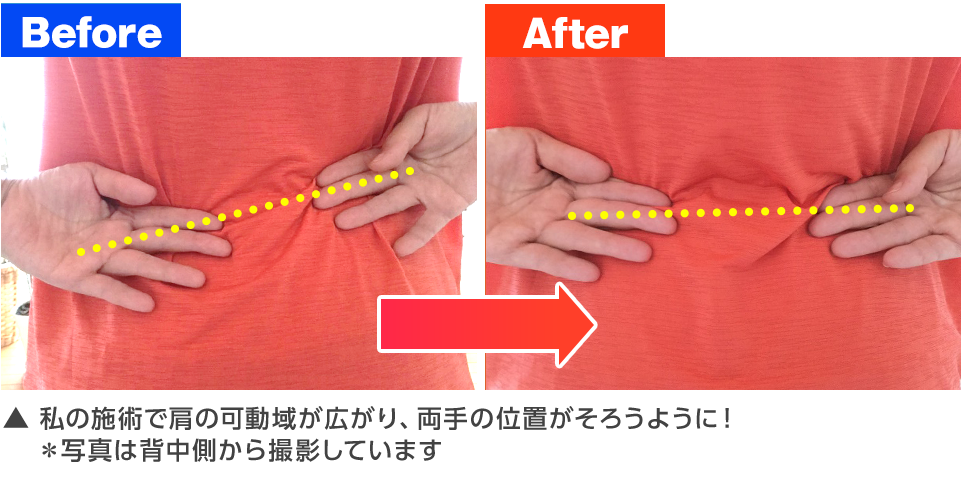 それは、わずか数秒で終わる超スピーディーな施術なのに、可動域が1回で変化して、痛みがウソのようになくなっていくからです。