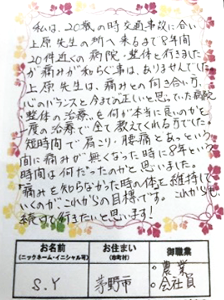 - 先天性の腰椎異常による20年来の腰痛も完治させた