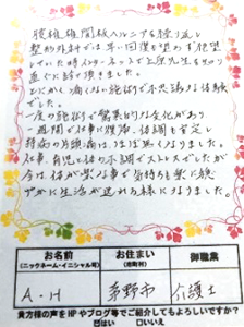 しかし、たった1回施術するだけで、痛みが半減し、「こんなに歩けるようになるなんて!!」という感動の声をいただくことができました。